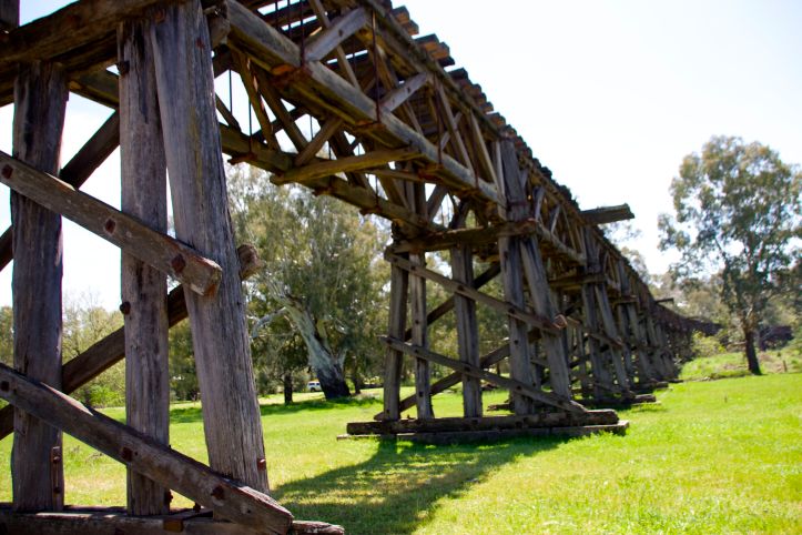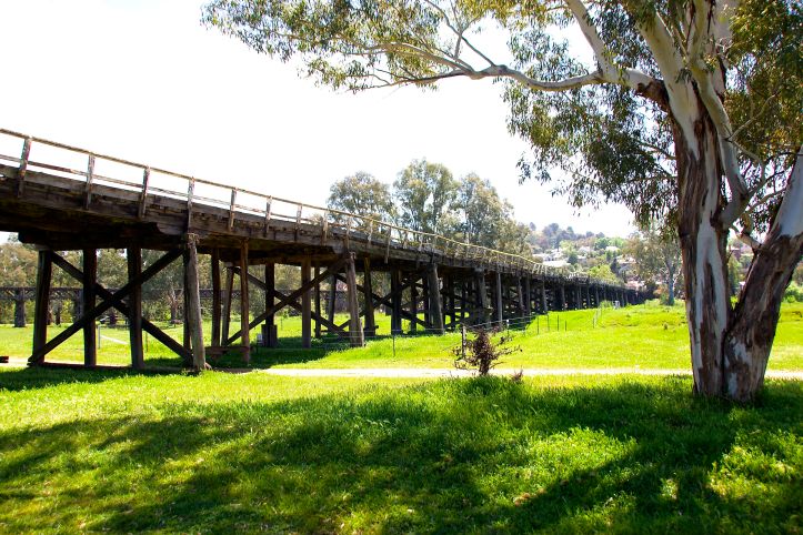 The Price Alfred Bridge was quite unique for the times. The total length of the bridge is 921 meters. The top chord is continuous and rests on roller bearing, (I don’t know what that means but it was in the information board so it must be important.) The cast iron drums that make up the piers (which are 2m high x 2m diameter) were the first large iron castings made in Australia. The bridge is also an early example of spectacular latticework wooden trusses, reflecting on early engineering.