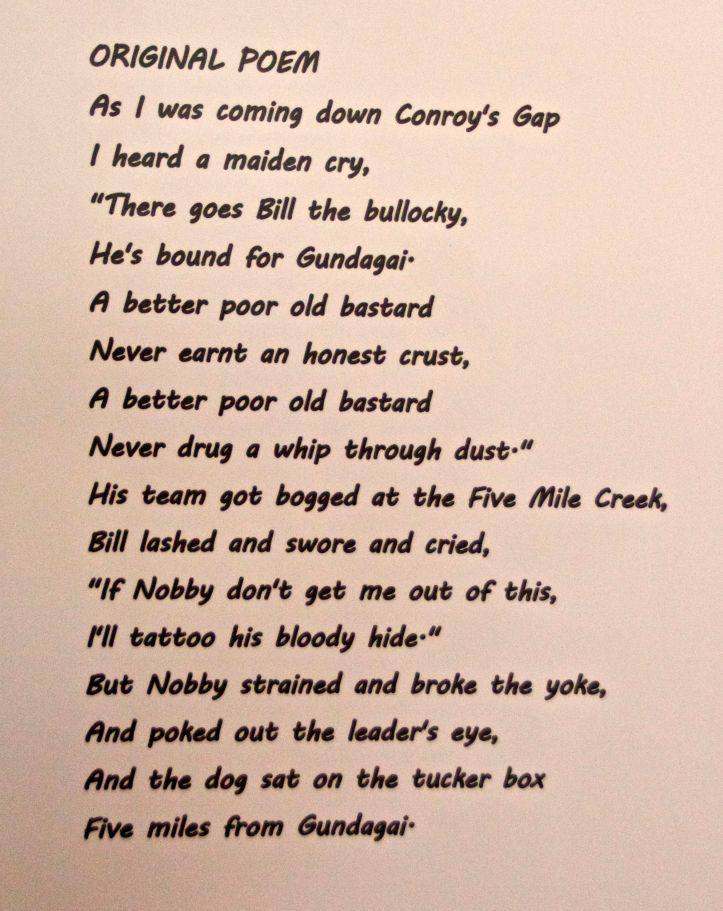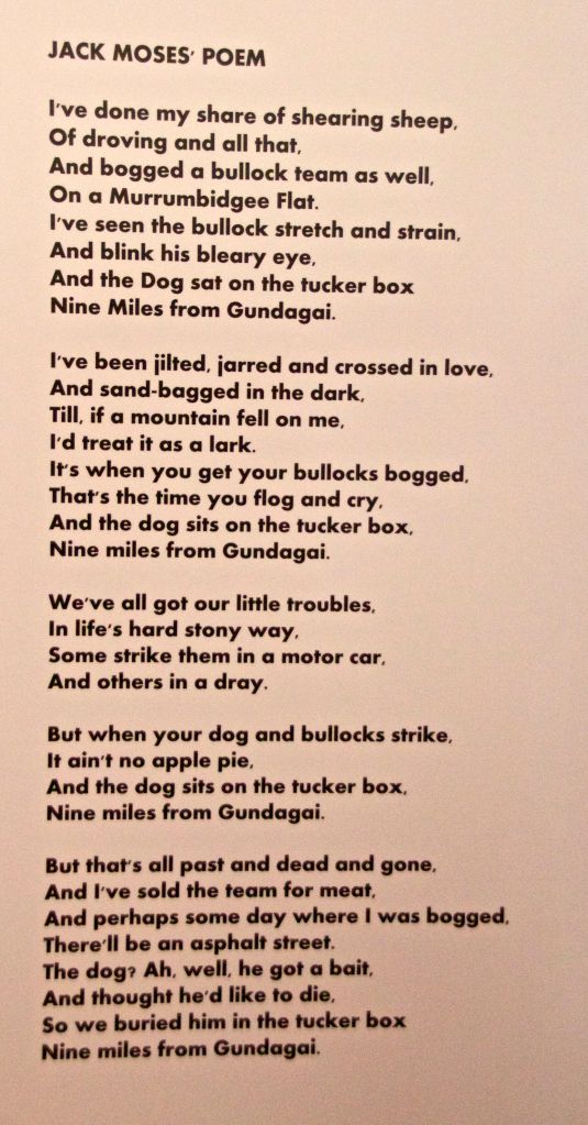 The next morning we made out way back to the tourist information centre. It had some of the other poems written about the dog on the tucker box on display. It is intriguing how one simple event could raise so much interest.